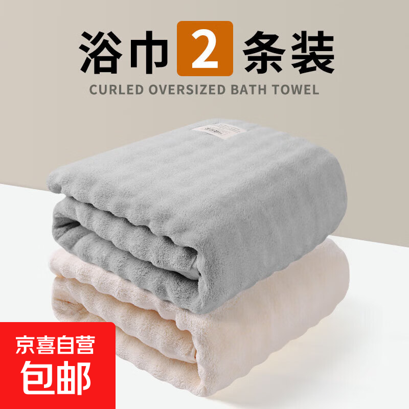 浴巾家用吸水速干女男款珊瑚绒不掉毛儿童大人情侣裹巾毛巾70*140 灰+白【浴巾2条 】泡泡绒