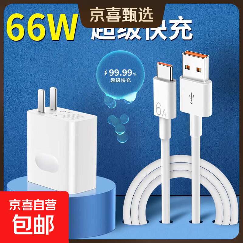 适用于华为超级闪充手机充电器mate60 p50p40p30 nova11 荣耀70手机型号66w插头6A数据线快充 闪充头+1.0米闪充线