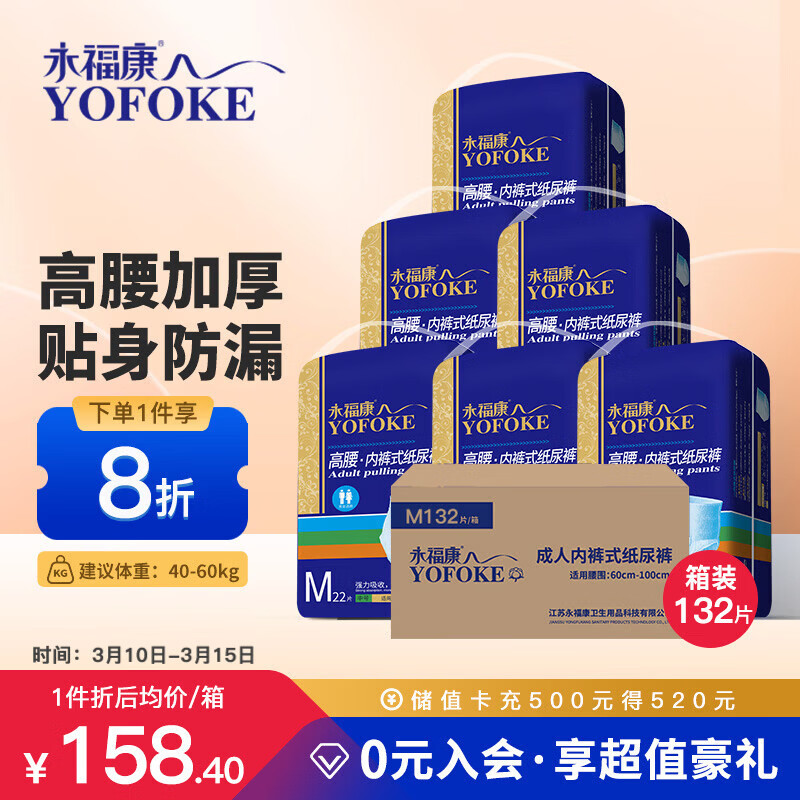 永福康金装加厚成人拉拉裤 M132片 臀围60-100cm 老人孕妇内裤型纸尿裤