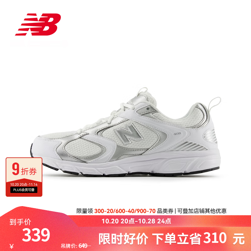 NEW BALANCE NB官方男鞋女鞋复古舒适百搭老爹鞋408系列 白色/银色 ML408WM 44 脚长28CM
