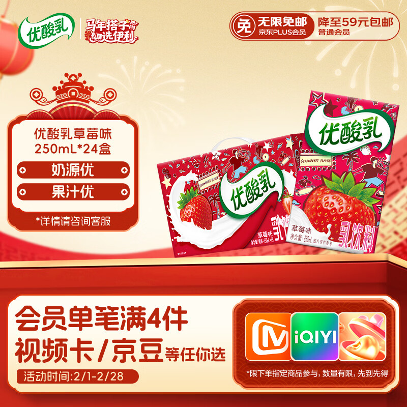 伊利优酸乳草莓味250ml*24盒乳饮料牛奶饮品 年货礼盒装