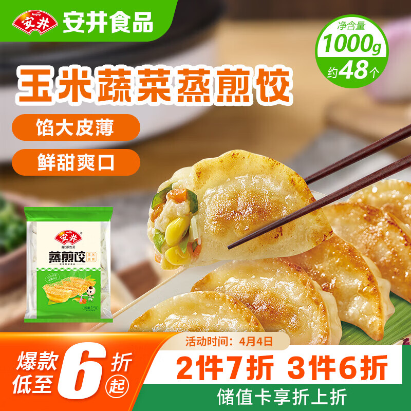安井玉米蔬菜蒸煎饺 1kg 2斤装约48个 锅贴蒸饺早餐 营养熟食点心