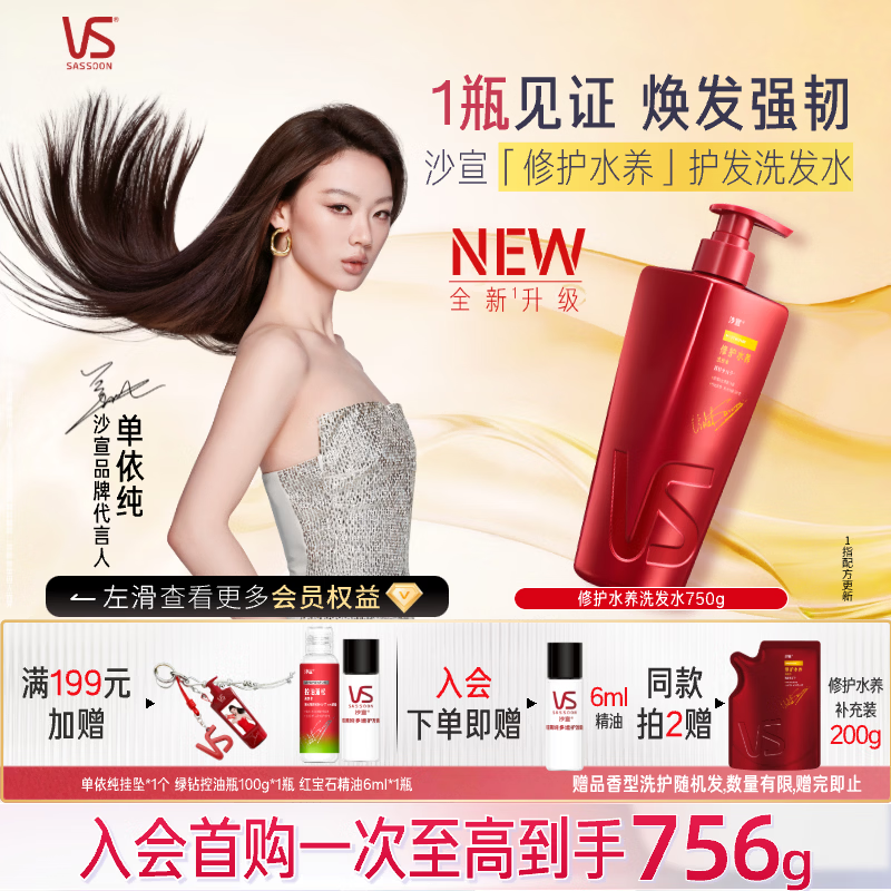 沙宣大红瓶修护水养洗发水750g深层修护发丝抚平毛躁洗头膏男女洗发露