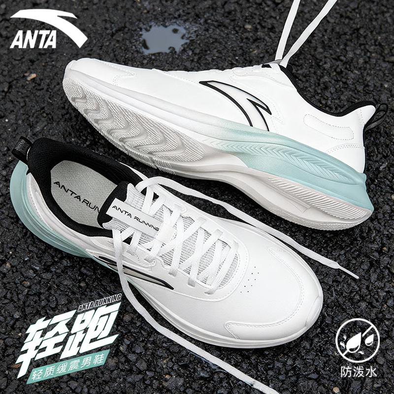 安踏运动鞋男鞋冬季氢跑4.0跑步鞋皮面超轻减震防泼水休闲跑鞋体测鞋 白/雾灰蓝 【皮面款】 42