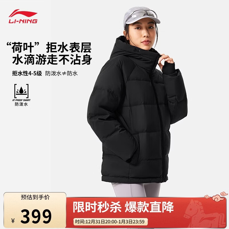 李宁短羽绒服女子秋冬季时尚休闲连帽保暖运动外套AYMV776