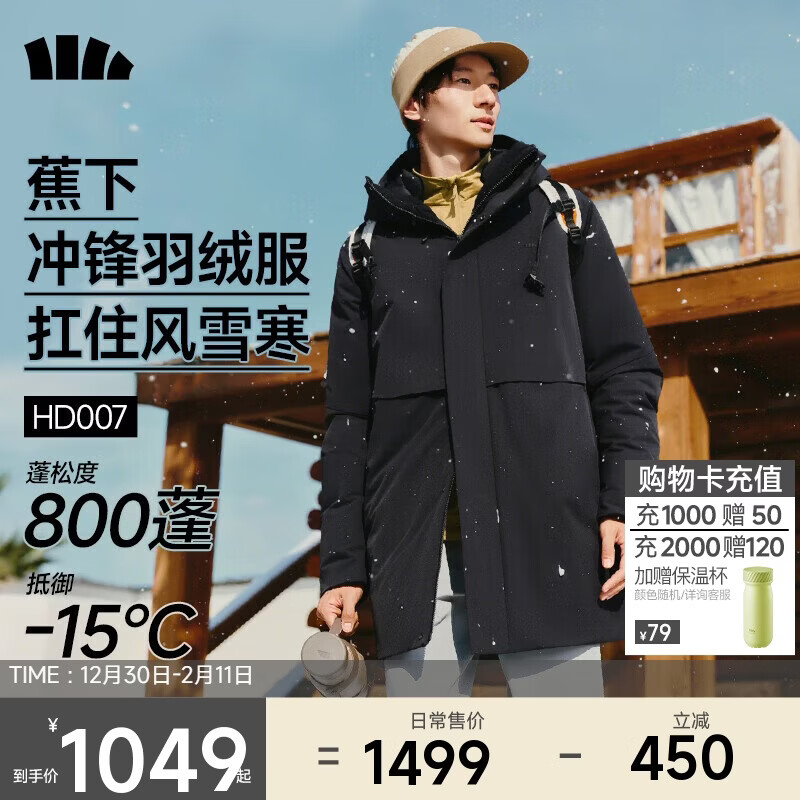 蕉下(beneunder)羽绒服男士2025年最新款硬壳冲锋外套中长款工装HD007漫暮黑L