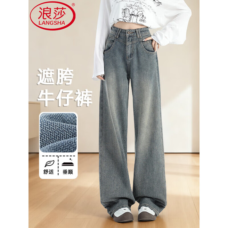 浪莎直筒牛仔裤女2025年新款高腰小个子复古高端星空纹窄版宽松阔腿裤