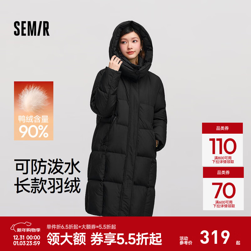 森马(Semir)陈都灵同款|长款羽绒服女冬高洁净90绒子防泼水可拆卸帽撞色外套 黑色(灰鸭绒)90001 M 【宽松版,建议拍小一码】