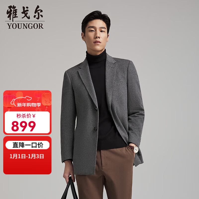 雅戈尔(YOUNGOR)大衣男士秋冬青年男大衣羊毛羊绒面料商务大衣 灰色VYSY017123DXY XL 180/100A