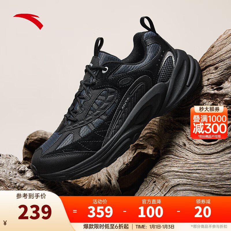 安踏探界2丨复古户外徒步鞋男登山越野跑鞋运动鞋 晶矿灰/基础黑-3 42 (男8.5)