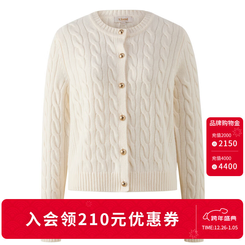 ELAND衣恋骐骥红毛针织衫女短款开衫外套2025秋季打底衫新款 象牙白/白色(39)Ivory S /160