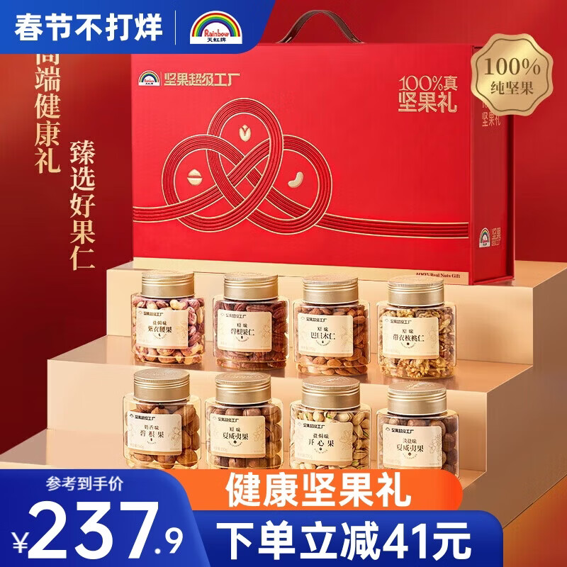 天虹牌纯坚果礼盒休闲零食大礼包每日坚果炒货干果团购送礼品8罐1.76kg