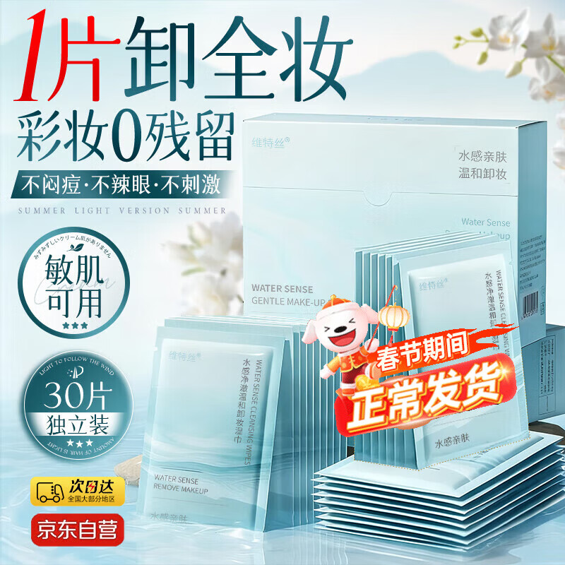 维特丝卸妆湿巾温和卸妆水深层清洁细致毛孔眼唇卸妆液一次性独立包装