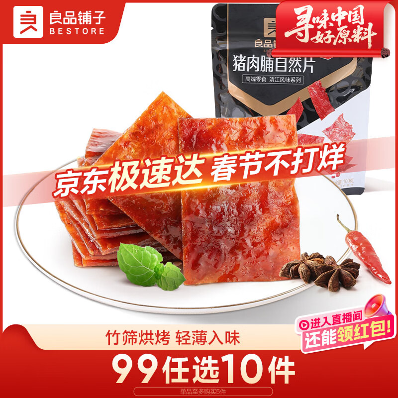良品铺子 猪肉脯香辣味肉干肉脯靖江风味猪肉干 网红休闲零食小吃100g