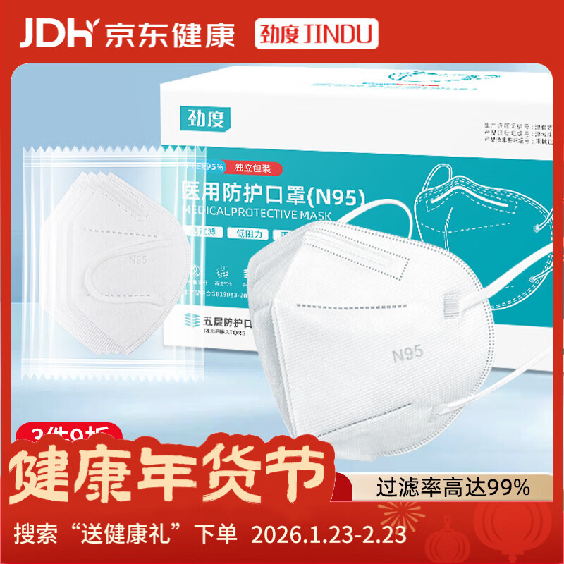 劲度(JINDU)N95型口罩医用一次性防护口罩双层熔喷布防细菌飞沫雾霾成人100只