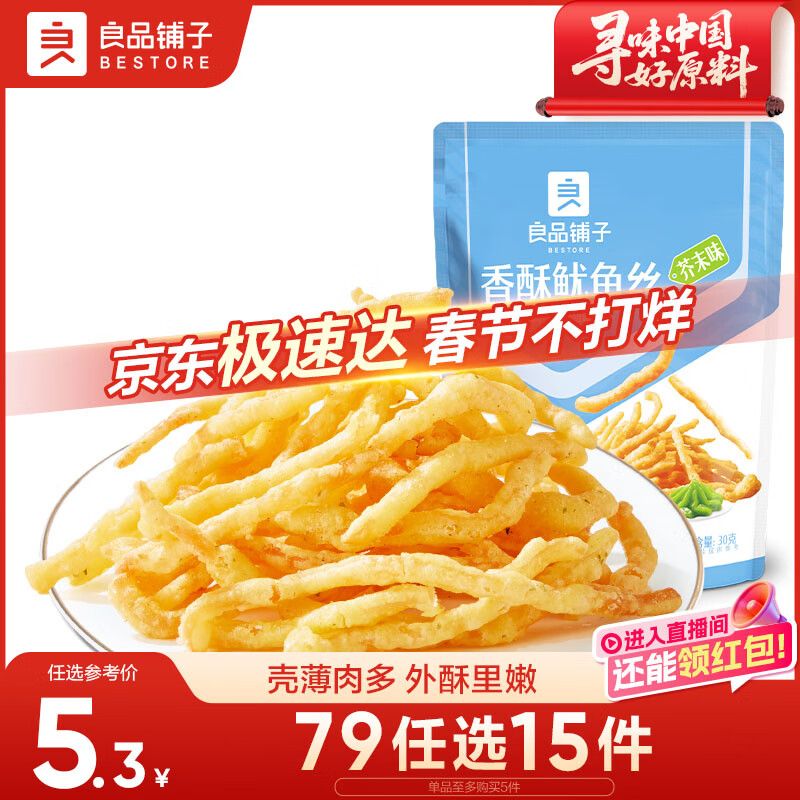 良品铺子香酥鱿鱼丝芥末味30g 休闲海味零食即食海鲜特产鱿鱼条