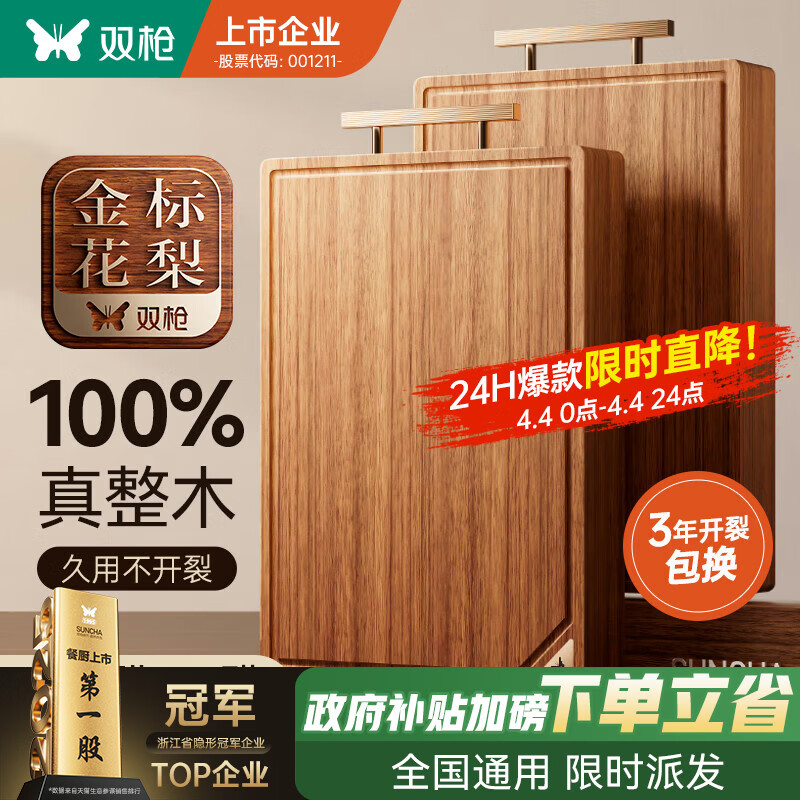 双枪金花梨木菜板整木砧板抗菌家用食品级切菜实木案板45*30*3cm