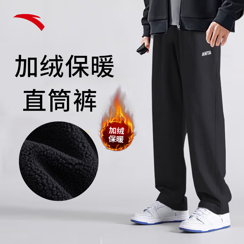 安踏男裤运动裤男士2025冬季保暖宽松直筒运动针织加绒裤子跑步长裤 【冬季加绒保暖推荐】基础黑-3 L (175/80A)建议110-125斤