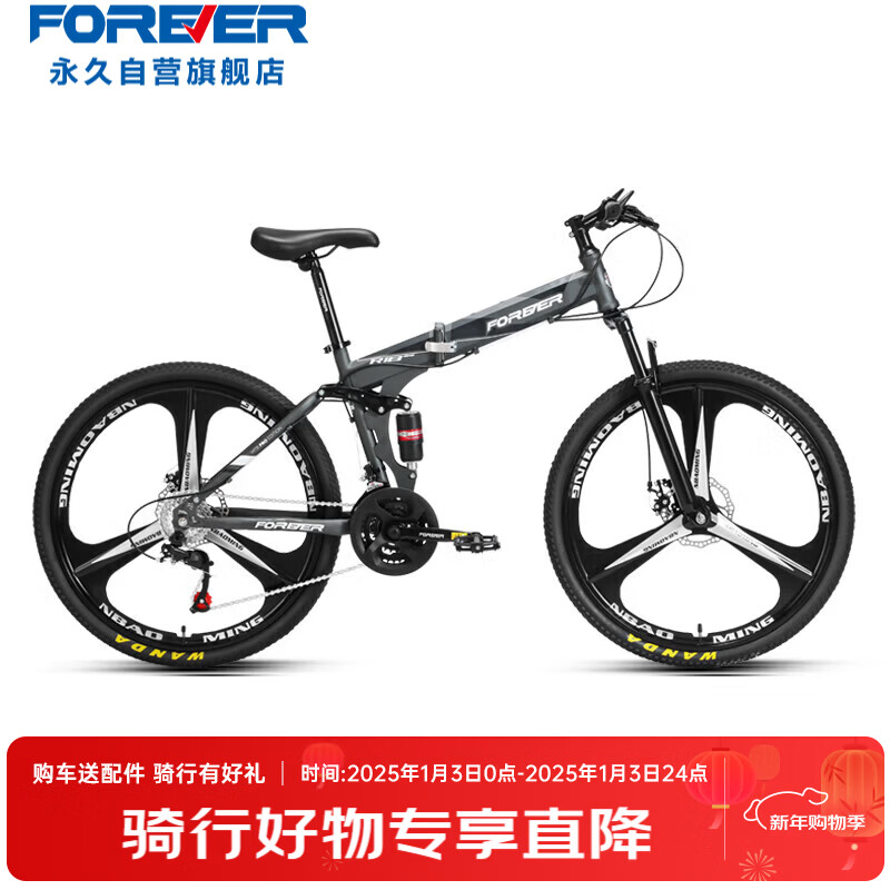 永久26英寸前后减震软尾折叠山地自行车变速男女式成人儿童单车一体轮
