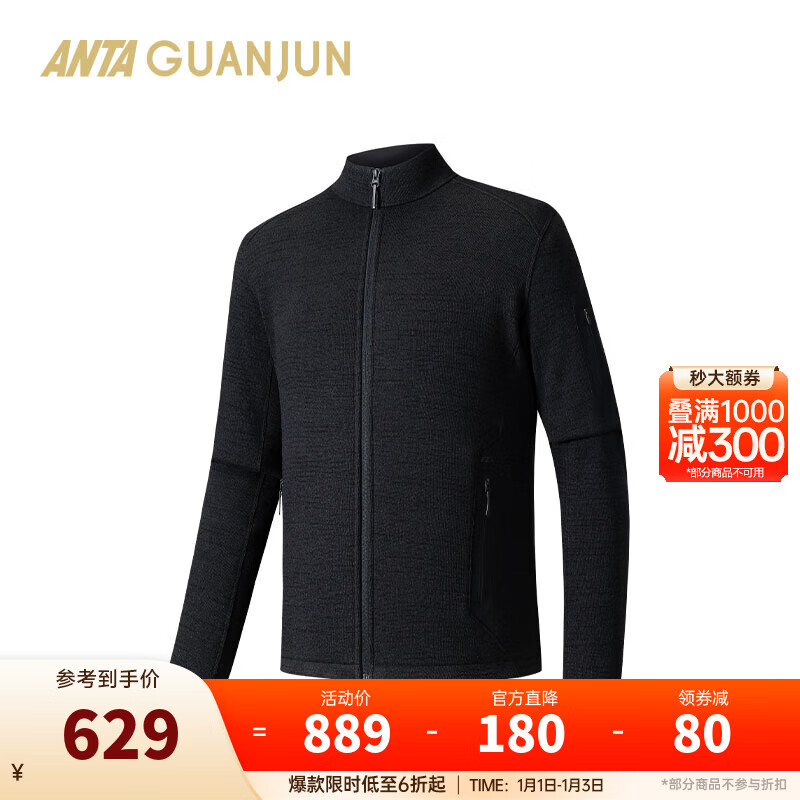安踏(ANTA)冠军徒步系列| POLARTEC科技户外保暖男针织运动上衣152540709 基础黑-3 L (男175)