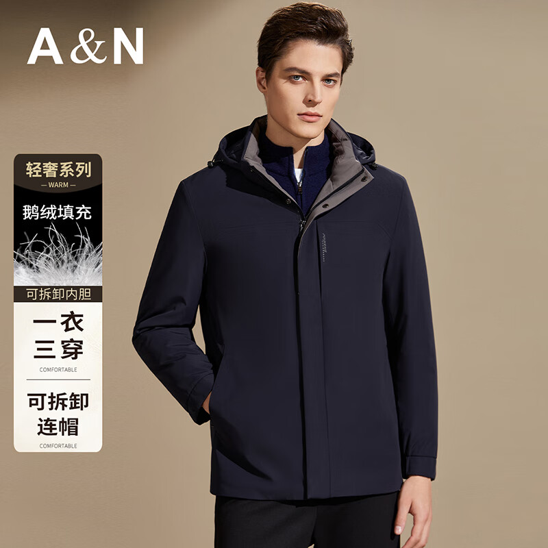 安东尼奥【90鹅绒内胆可拆卸】一衣三穿男士商务休闲连帽羽绒服外套鹅绒服