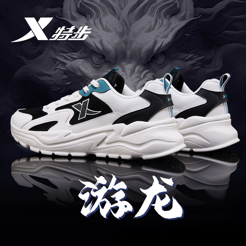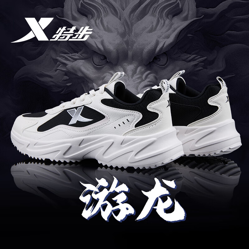 特步男鞋运动鞋子男款减震轻便回弹跑步鞋2025秋冬季青少年皮面休闲鞋 帆白/黑【网面透气】0053 41