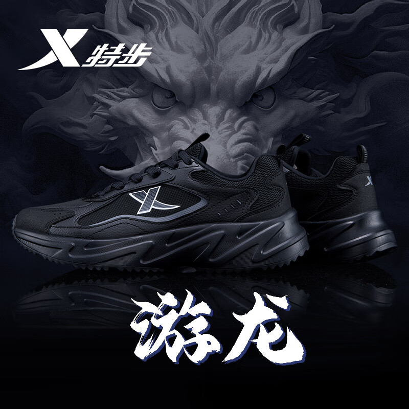特步男鞋运动鞋子男款减震轻便回弹跑步鞋2025秋冬季青少年皮面休闲鞋 黑【网面透气】0053 39