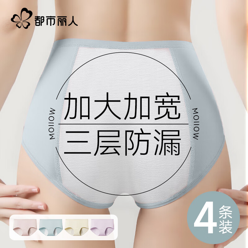 都市丽人生理期内裤女士纯棉100全棉抑菌档月经姨妈期加宽防漏大码生理裤