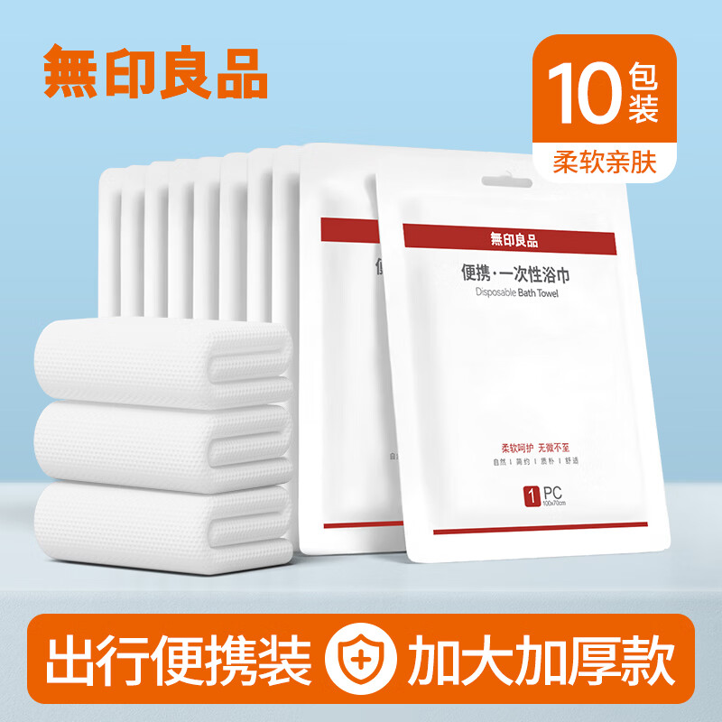 无印良品 一次性浴巾10条装加大加厚旅行用品独立包装出行套装酒店洗澡巾