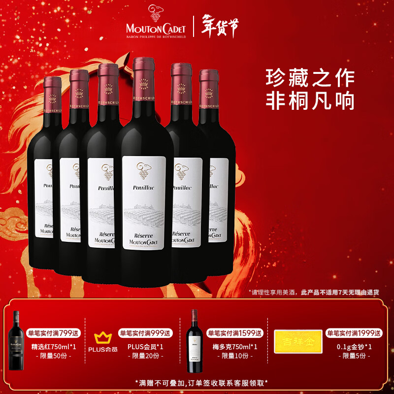 木桐嘉棣(MOUTON CADET)法国 波尔多 珍藏 波亚克 红葡萄酒 750ml*6瓶 整箱 年货送礼