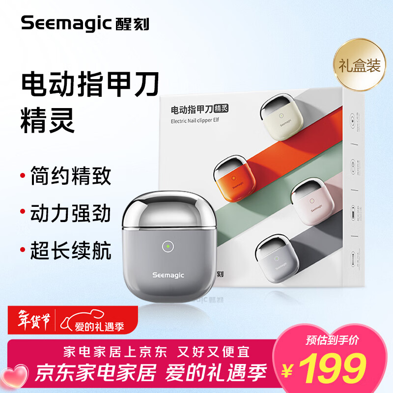 Seemagic情人节礼物醒刻电动指甲刀指甲剪精灵款潮流便携全自动剪指甲电动磨甲器修甲安全送男女朋友浅灰色