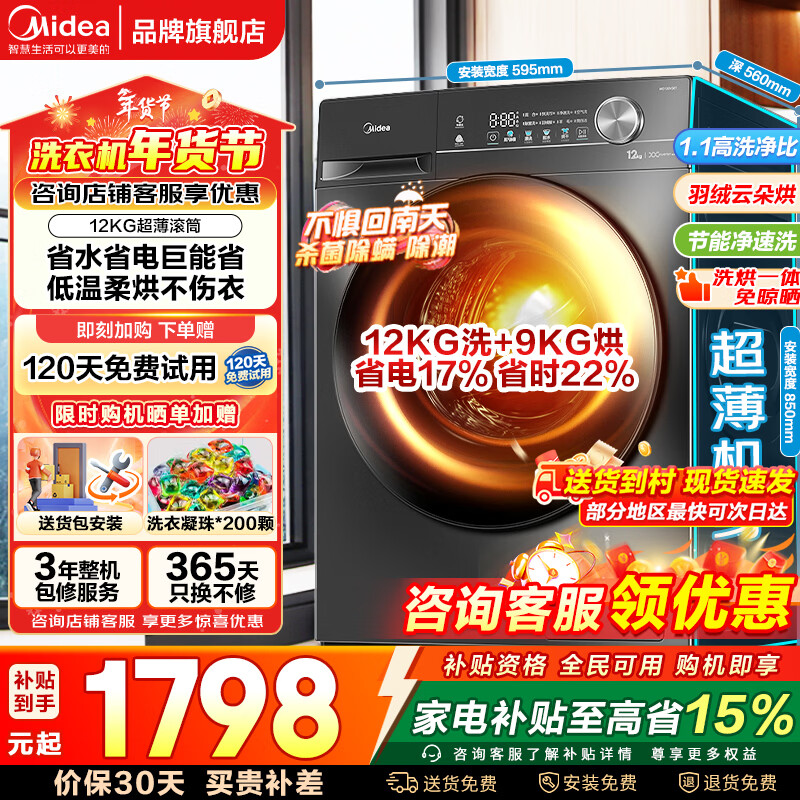 美的(Midea)滚筒洗衣机全自动 12公斤大容量 洗脱/洗烘一体 至高1.1洗净比 一级能效除螨除菌以旧换新家电补贴 【12公斤1.1洗净比】带烘干36T 洗烘一体
