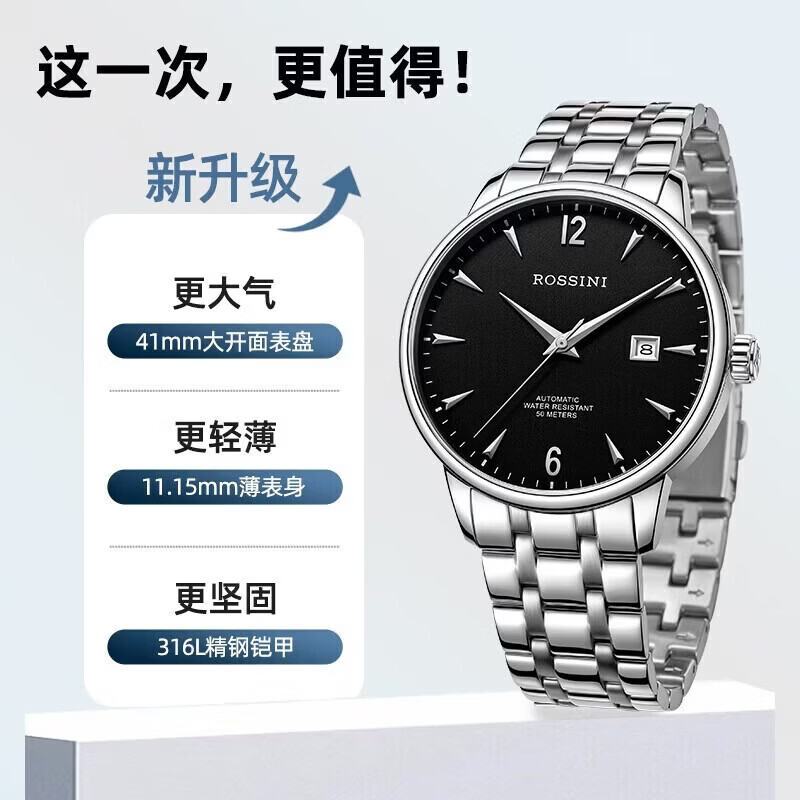 罗西尼(ROSSINI)手表男士 机械手表新年礼物送男友简约商务日历钢带525773
