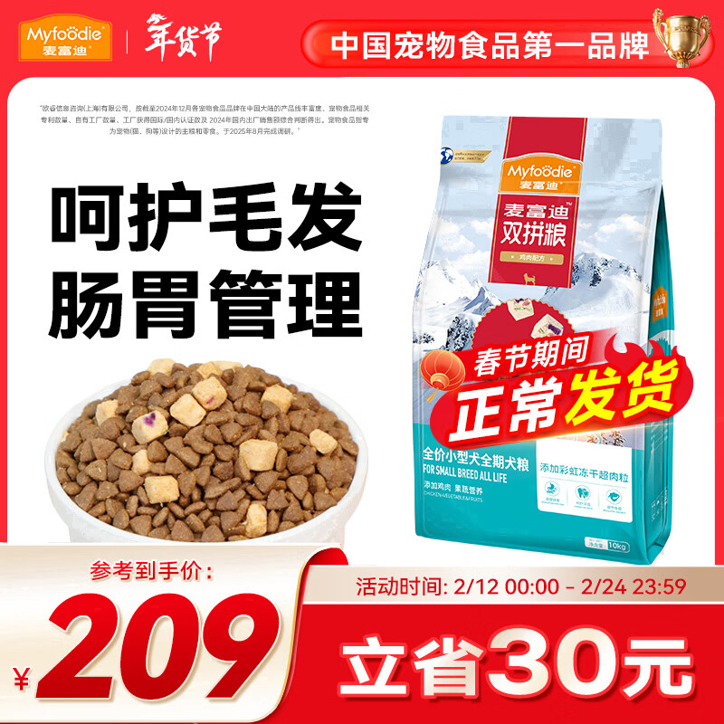 麦富迪 狗粮 超肉粒冻干双拼全期犬粮小型犬中大型犬成犬幼犬通用天然粮 推荐|小型犬全期犬粮10kg