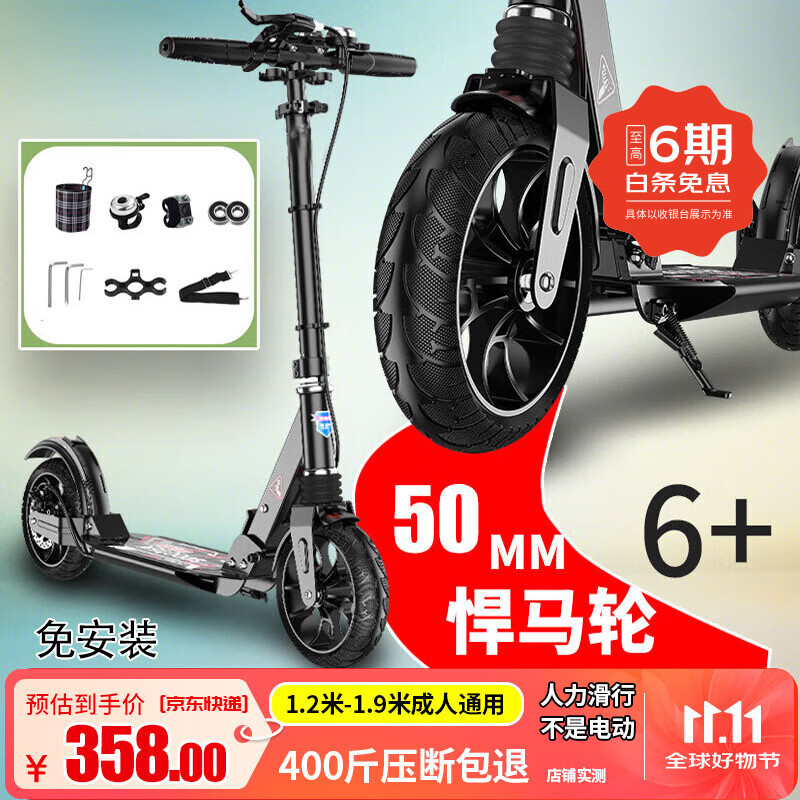 帝百伦(DEPTHPOWER)儿童滑板车成人6-10岁14岁30岁代步神器上班折叠男女孩平衡踏板车 悍马黑【手闸碟刹双减震】非电动