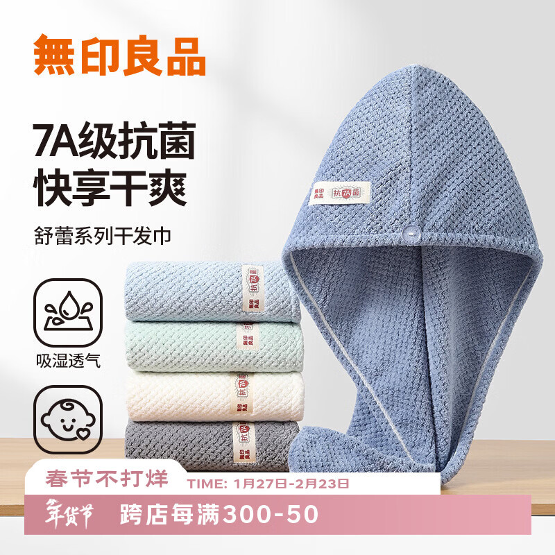 无印良品干发毛巾7A级抗菌强吸水速干擦头A类毛巾包头巾加厚擦脸巾浅蓝