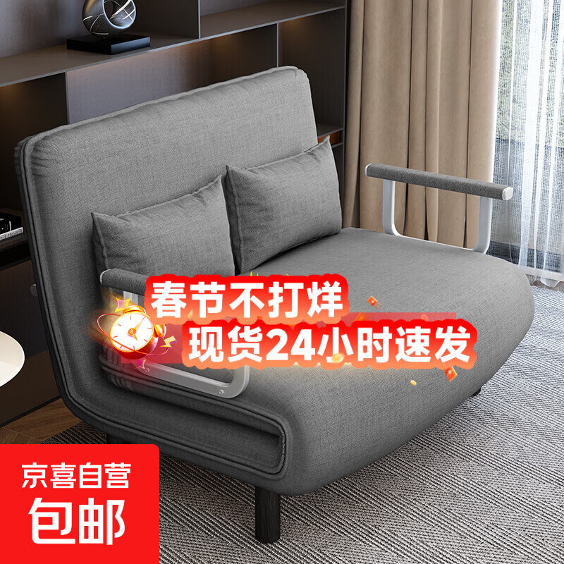 家用可折叠沙发床客厅小户型款两用布艺沙发阳台沙发床午休躺椅 [升级两用沙发--床]星空灰【黑色扶手】 80*190款抗压沙发床【一个抱枕】