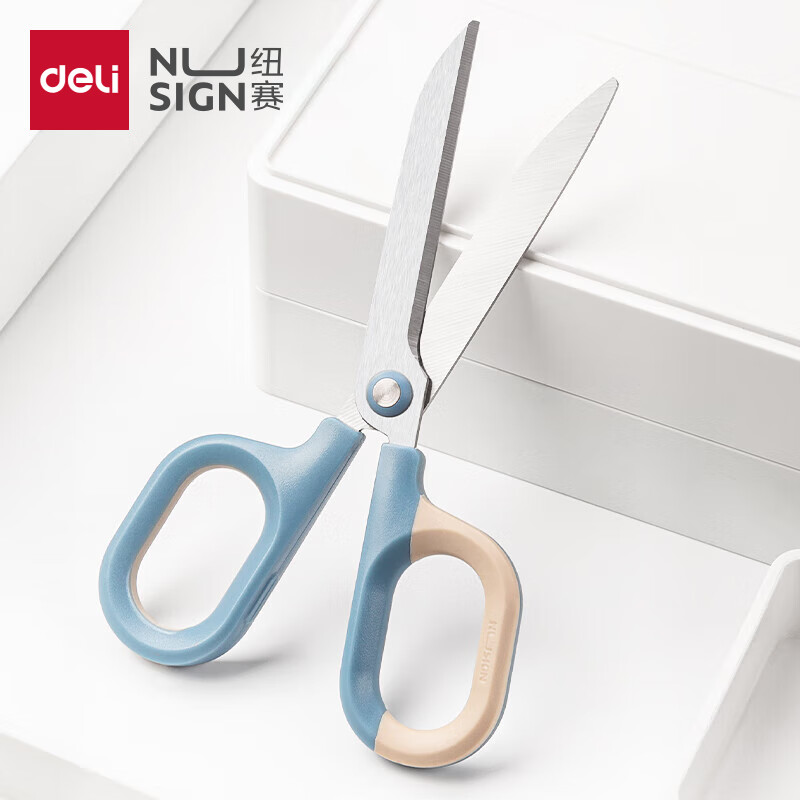 得力(deli)得力纽赛(NUSIGN)小号弧形剪片省力剪刀 德国创意设计 主副双拼色设计办公文具/家用 蓝色NS056
