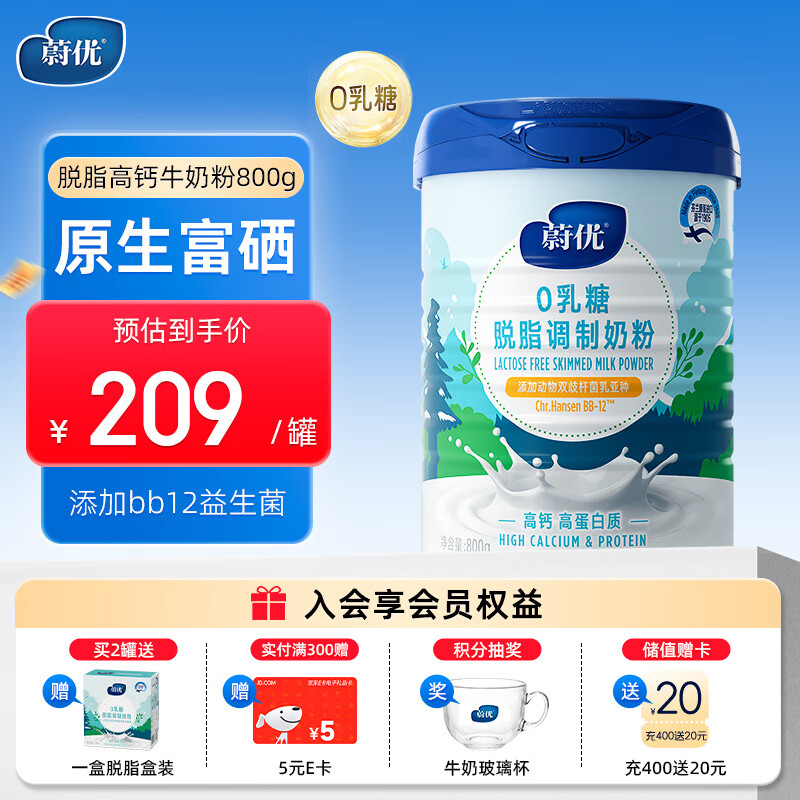 蔚优 0乳糖牛奶粉 脱脂富硒奶粉800g 高钙高蛋白 中秋送礼