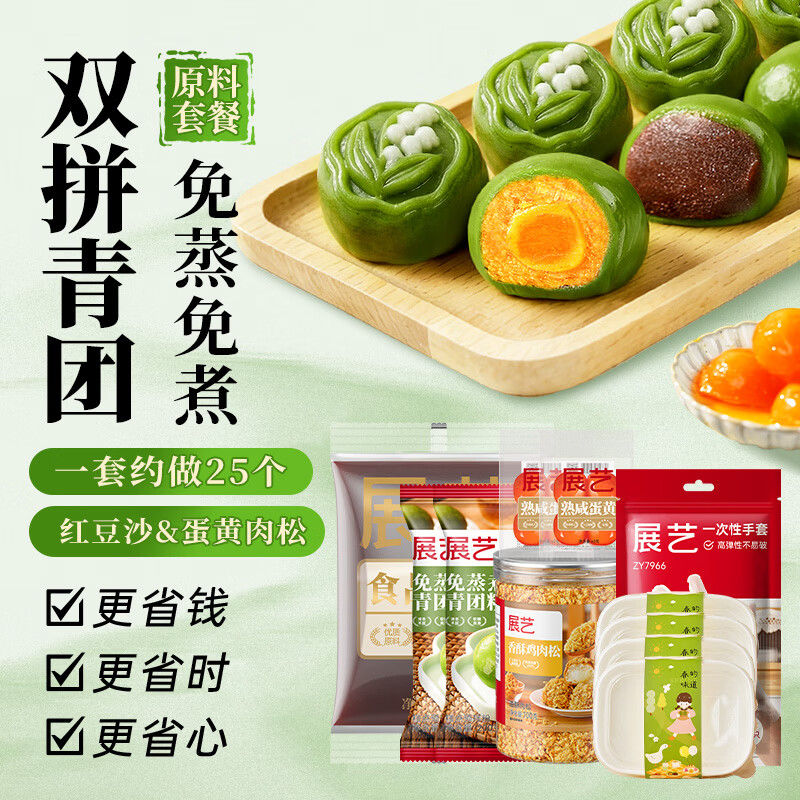 展艺红豆沙蛋黄肉松双拼青团自制套装清明果预拌粉家用制作材料包