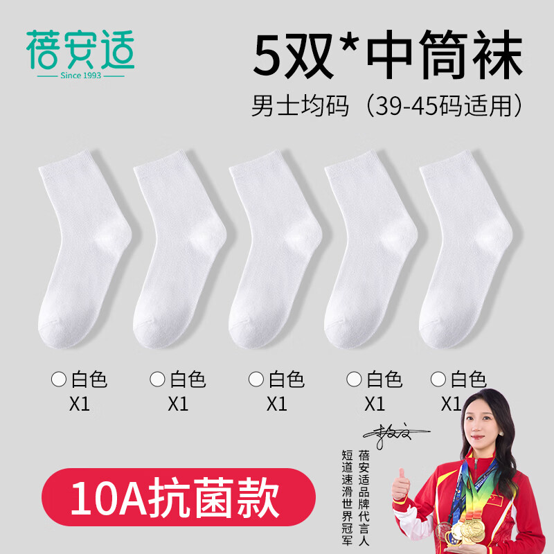 蓓安适一次性袜子男士【10A抗菌级】旅行便携中筒白色5双装