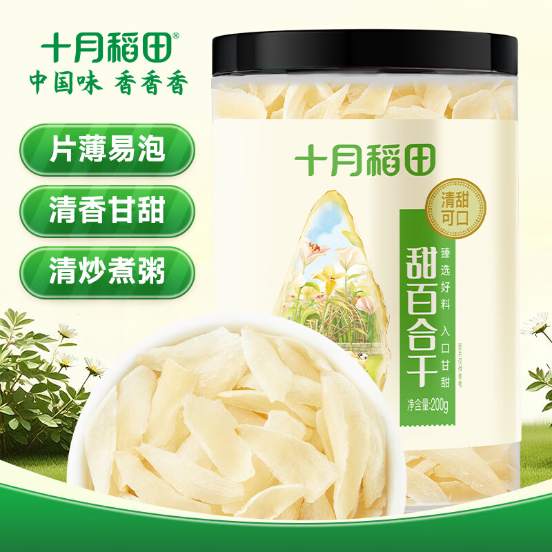 十月稻田 甜百合干 200g 微甜不苦 甜百合桂圆莲子 炒菜煲汤甜羹食材