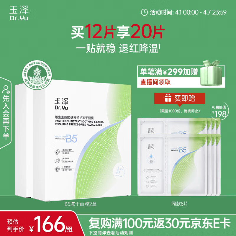 玉泽维生素原B5速安特护冻干面膜6片装*2盒 补水保湿晒后舒缓修护屏障