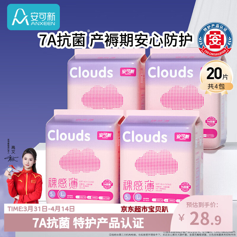 安可新孕产妇安睡裤7A抗菌特护级裸薄安心裤卫生巾夜安裤女经期L码20片