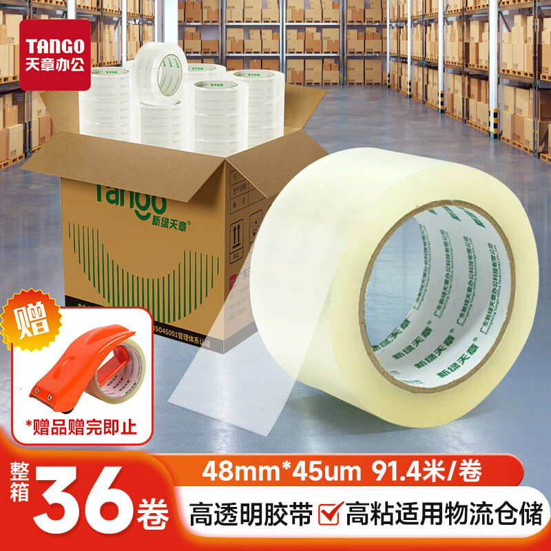 天章 (TANGO)【36卷高性价比箱装】高透明胶带48mm*100y(91.4米)*45um 36卷高粘封箱打包胶带 办公用品