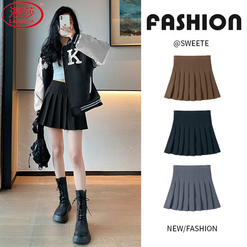 浪莎百褶裙女秋季2025新款高腰显瘦学院风a字半身裙小个子jk西装短裙