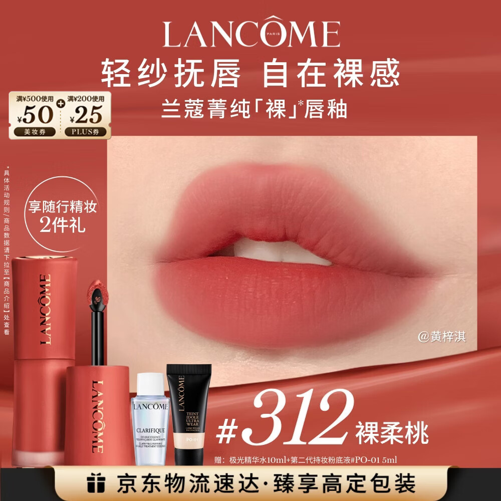 兰蔻312裸唇釉裸柔桃显白裸橘色口红套装化妆礼盒生日新年礼物送女友