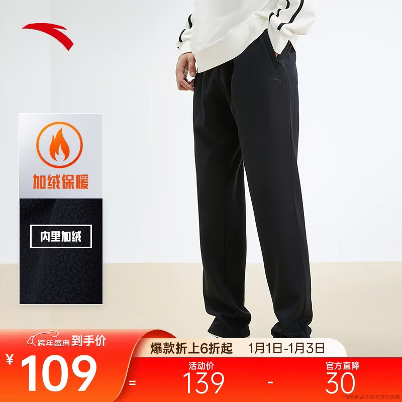 安踏加绒保暖运动裤男士直筒卫裤冬季针织户外跑步长裤平口休闲裤
