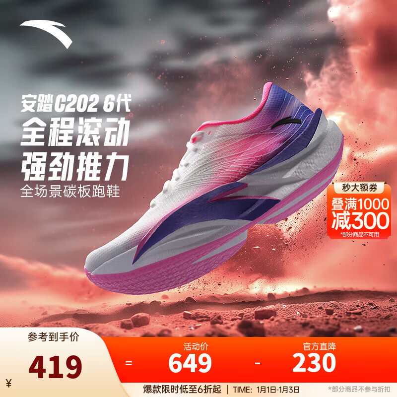 安踏C202 6代丨贝克勒同款专业碳板马拉松竞速跑鞋氮科技男女运动鞋 【男款】纸莎白/玫红/紫-11 42