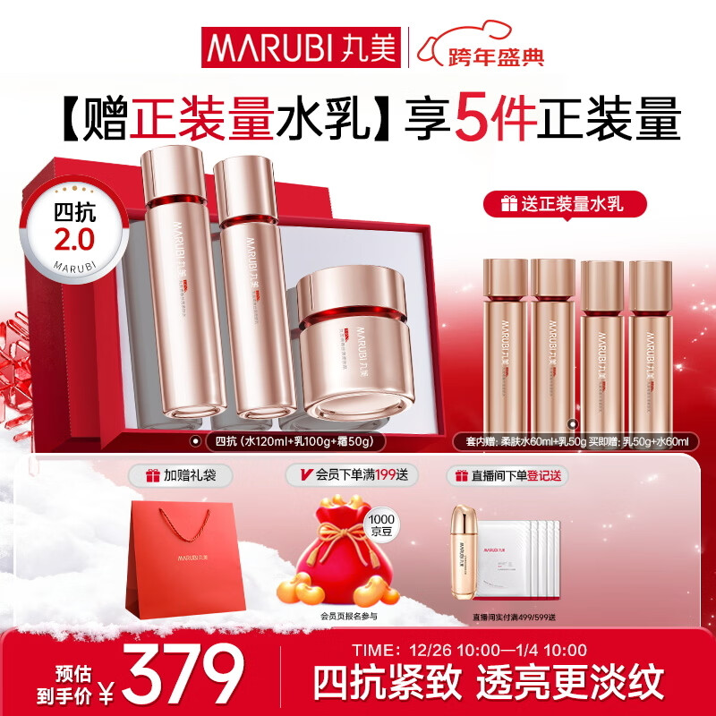 丸美四抗套装 青春丝滑水乳霜护肤礼盒紧致抗皱抗氧淡细纹元旦礼物